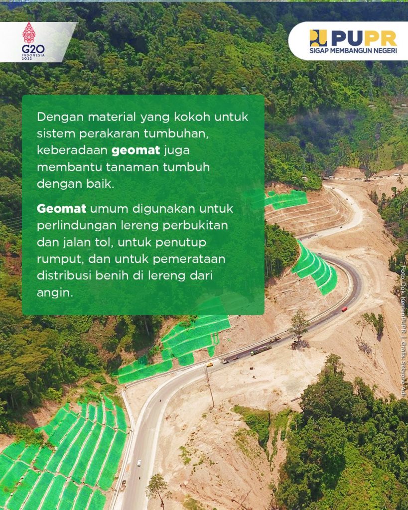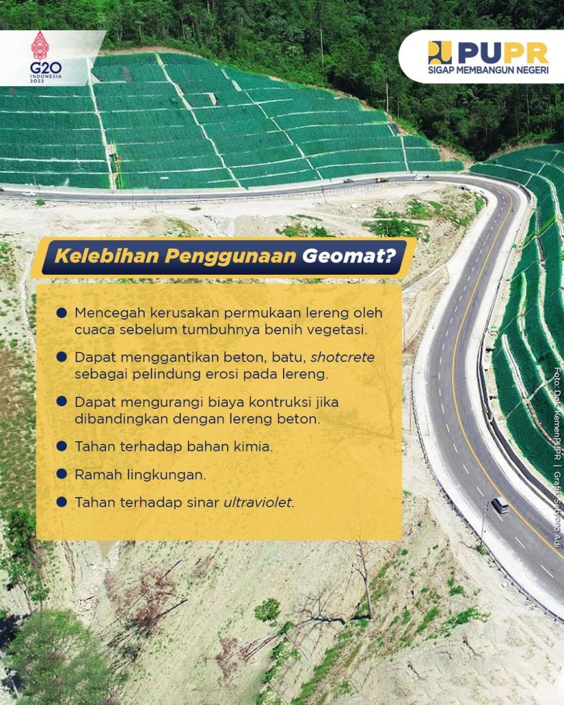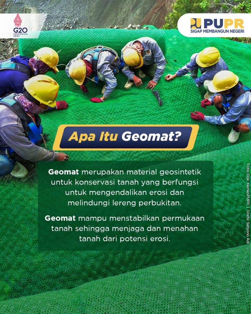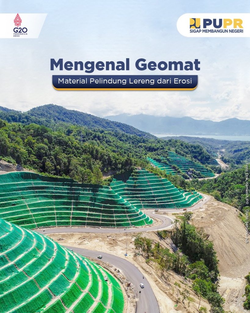 Mengenai lebih jauh mengenai Geomat atau Selimut Pelindung erosi pada lereng dengan penjelasan lewat grafis yang diterbitkan oleh Kementrian Pekerjaan Umum Republik Indonesia.